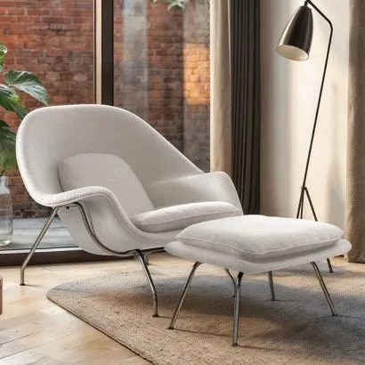 Lounge Chair - White Design Chair - Fabric Upholstery - Gene...