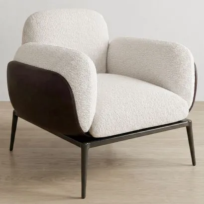 Armchair with Armrests - Upholstered in Boucle Fabric - Pimba