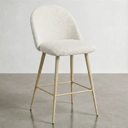 Stool Upholstered in Bouclé Fabric - Scandinavian Design - 6...
