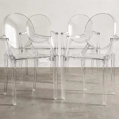 Pack of 4 Dining Chairs - Transparent - Design with Armrests...