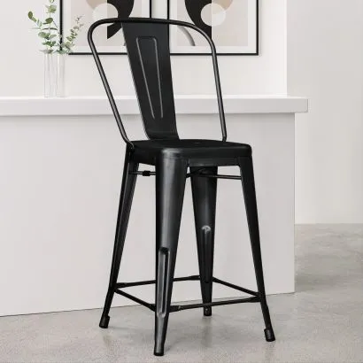 Bar Stool with Backrest - Industrial Design - 60cm - New Edi...