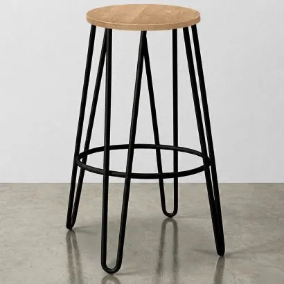 Round Stool - Industrial Design - Wood & Metal - 66cm - Hair...