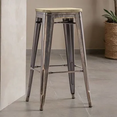 Industrial Design Bar Stool - Steel & Wood - 76cm - Stylix
