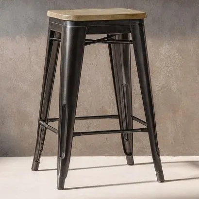 Industrial Design Stool - Wood & Metal - 45cm - Stylix