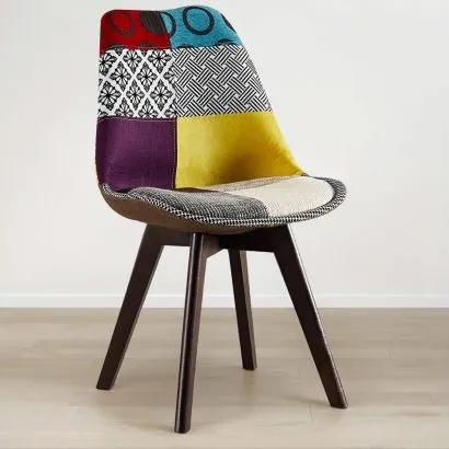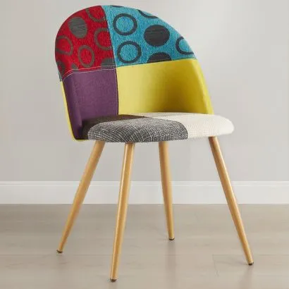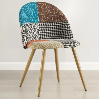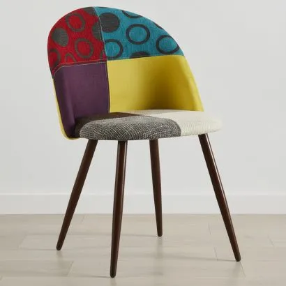 Patchwork Upholstered Dining Chair with Armrests - Pixi