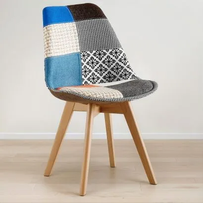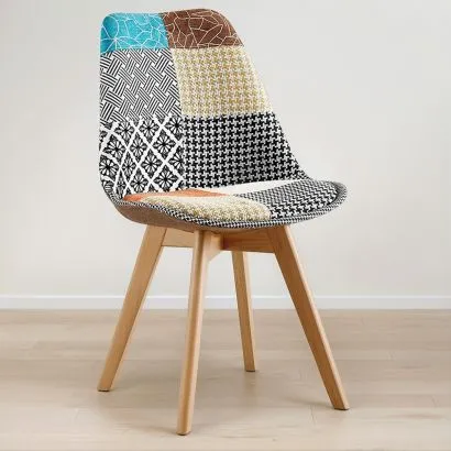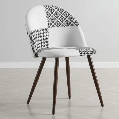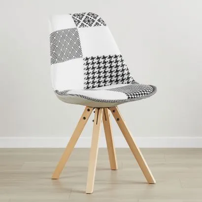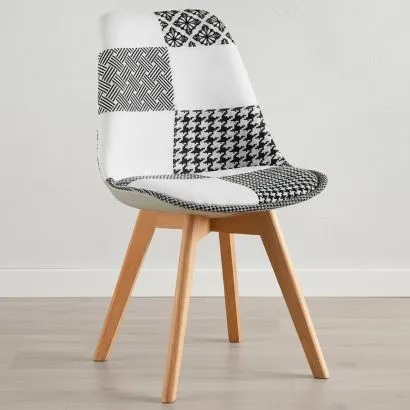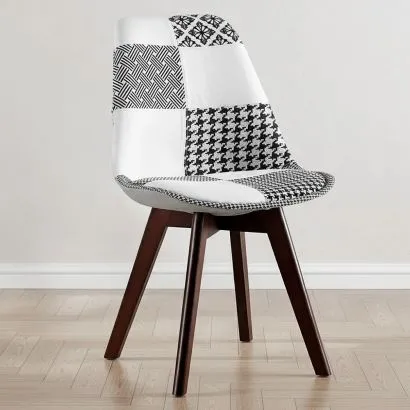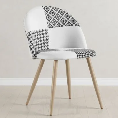 Dining Chair - Upholstered in Patchwork - Black and White - Denisse