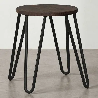 Round Stool - Industrial Design - Wood & Steel - 43cm - Hairpin