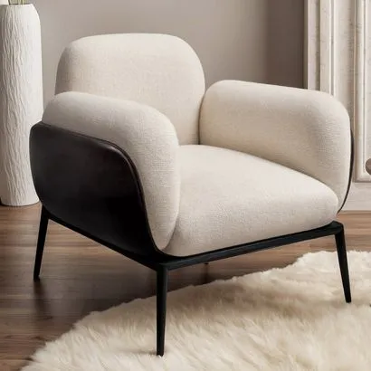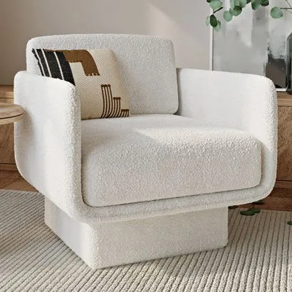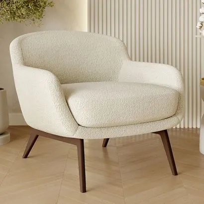 Upholstered Armchair - Bouclé Fabric Lounge Chair - Magnolia