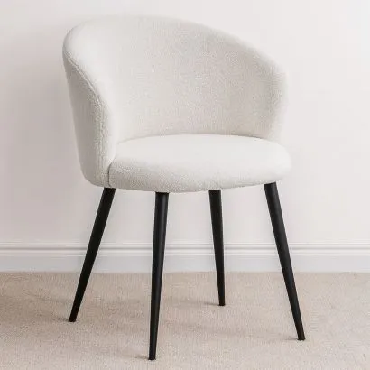 Dining chair - Upholstered in Bouclé Fabric - Black Metal - Seda