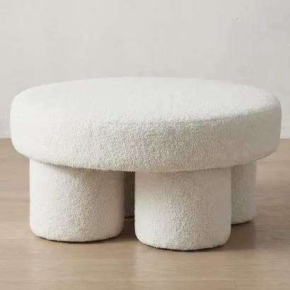 Round Pouf Upholstered in Bouclé Fabric - Gereth