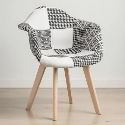 Patchwork Upholstered Dining Chair with Armrests - Pixi