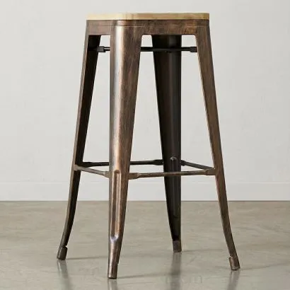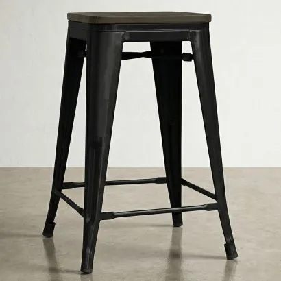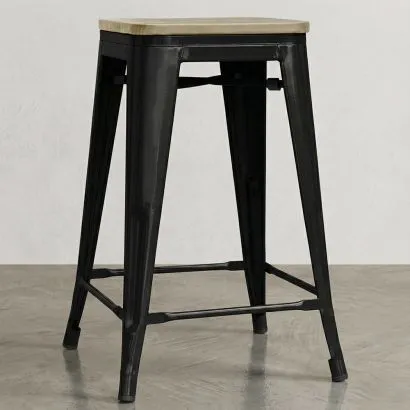 Industrial Design Stool - Wood & Steel - 45cm -Stylix