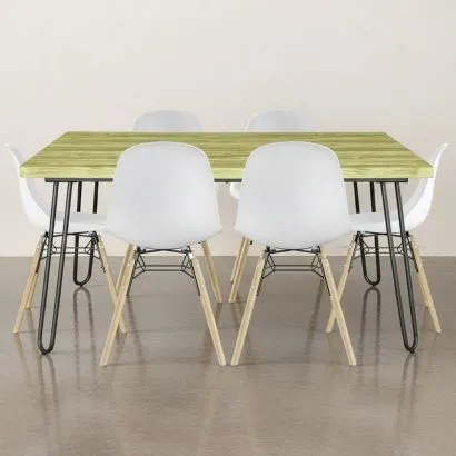 Set Table Hairpin (90x150 cm) + 6 Dining Chairs Nordic Skögu...